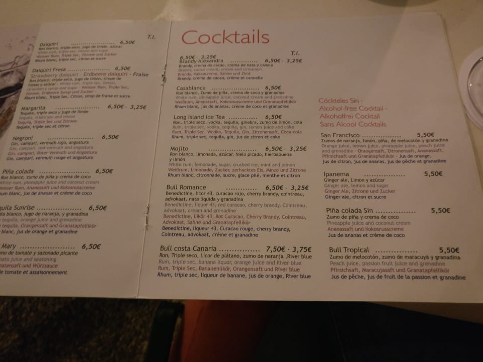 " Teil der CocktailKarte" Bull Costa Canaria & Spa Adults only (San
